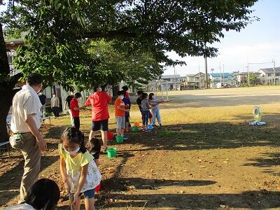 2021年8月31日 09時03分8月27日(金)美里自然楽校の方にご指導いただいて、「竹の水てっぽうづくり」を行いました。竹をのこぎりで切り落としたり布を巻き付けたり、なれない作業で大変でしたが、最後には完成した竹の水てっぽうで、「的」に飛ばしてあってみんなで楽しく遊びました