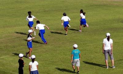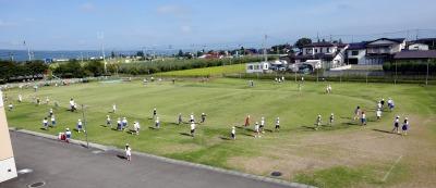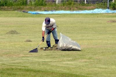 校庭の子どもたちの姿が見られない朝早くに芝刈り機を運転して、