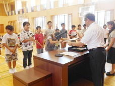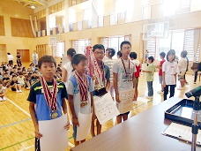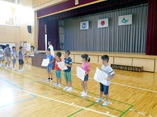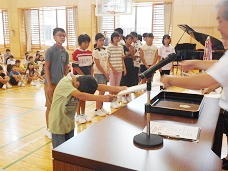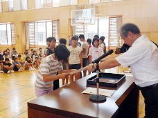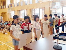 始業式では、代表の2年男子、4年男子、6年女子の3名が、