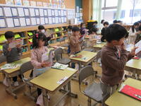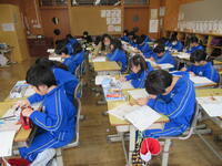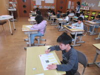 2024年1月16日 09時45分風が冷たい、火曜日、1時間目の授業の様子です。1年生は国語。1組も2組もプリントにドリルに集中しています。2年生も国語。今日も1日、頑張ります。3年生は算数。問題にじっくりと取り組んでいます。きらら学級は国語、算数。問題をしっかりと読みながら答えています。4年生は算数。難しい形の面積を求めています。5年生は国語。文章の段落分けを確認しています。6の1は国語。説明文の学習に班ごとに取り組んでいます。6の2は算数。学級全体で教え合いながら学んでいます。今日も「チーム本郷」ドリームに向かって頑張ります!!
