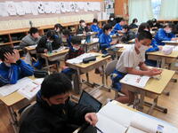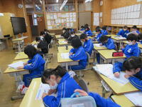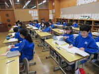 2024年1月12日 10時15分金曜日、1時間目の授業の様子です。1の1は国語。今日も大きな声で音読ができています。1の2も国語。漢字の筆順を覚えています。2年生は算数。数の仕組みについて学んでいます。3年生も算数。問題を解いています。きらら学級は国語、算数。九九、国語辞典、算数の問題など一生懸命です。4年生は発育測定を行っているため、教室にいる子ども達はドリルなどの問題に全力投球です。5年生も算数。割合を使って問題を解いています。6の1は理科。実験の仕方について学んでいます。6の2は国語。俳句を作っていました。1週間の締めくくり。「チーム本郷」集中して取り組んでいきます!!