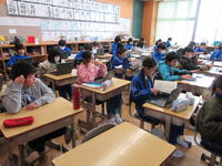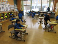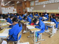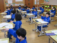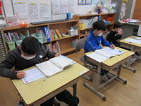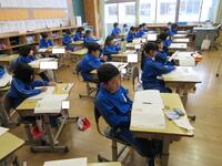 2023年12月18日 09時50分月曜日、1時間目の授業の様子です。1の1は書写。数字の書き順の確認をしていました。1の2はこれからテストがスタートするところです。2年生は国語。音読を聞いていました。3年生は体育。自己目標に向かって、なわとびチャレンジです。きらら学級は国語、算数。2学期のまとめを頑張っています。4年生は算数。時計の針がどのように変わっていくか調べていくようです。5年生は国語。タブレットを使って考えをまとめています。6の1は国語。自分の今年一年を漢字1文字で表すようです。6の2は2学期のまとめ。それぞれのめあてに向かって頑張っています。いよいよ2学期最終週。「チーム本郷」最後の1週間、しっかりと締めくくっていきます!!