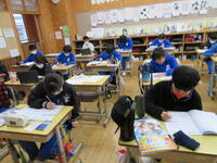 1週間の締めくくり、金曜日の1時間目の様子です。1の1は国語。はっきりと元気に音読です。1の2は書写。ていねいに書いています。2年生は算数。かけ算九九を頑張っています。3年生も算数。重さの学習です。きらら学級は国語、算数。しっかりと復習しています。4年生は体育。ボールを使った運動です。5年生はテスト。じっくりと考えています。6の1は理科。水溶液を使った実験です。6の2はまとめの学習。それぞれの目標に向かって頑張っています。今日も「チーム本郷」2学期のまとめに全力投球していきます!!