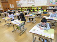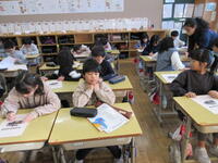2023年12月14日 09時35分木曜日、1時間目の授業の様子です。1年生は国語。1組も2組もていねいに練習しています。2年生も国語。ノートにしっかりと書いています。3年生はこの後の見学学習の準備。しっかりと見てきてください。きらら学級は国語、算数。問題にチャレンジです。4年生は算数。分数の問題をみんなで解きあっています。5年生は算数。面積を求める公式をクイズ形式で楽しみながら解いています。6の1は外国語。台湾との交流に向けてビデオレターを作成するようです。6の2は算数プリントにしっかりと取り組んでいました。今日も「チーム本郷」集中して学習に取り組んでいきます!!