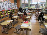 金曜日、1時間目の授業の様子です。1年生は国語。1組はテスト。2組は感想カード。どちらのクラスも頑張っています。2年生はこれからテストが始まります。頑張ってください。3年生もテスト。集中しています。きらら学級は算数。かけ算に重さに頑張っています。4年生は体育。なわとびを一生懸命に跳んでいます。5年生は漢字プリント。よく考えて書いています。6の1は理科。実験の説明を聞いています。6の2は国語。座右の銘を考えるようです。今日も「チーム本郷」午後の授業参観まで学習に集中して取り組んでいきます!!