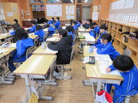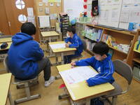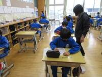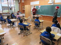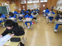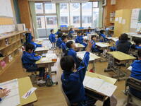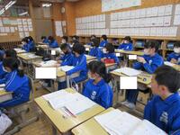 2023年12月6日 10時15分水曜日、1時間目の授業の様子です。1の1は外国語。クリスマスについての学習です。1の2は算数。モニターで説明しています。すごい。2年生は算数。九の段です。3年生も算数。重さの学習です。きらら学級も算数。重さやかけ算などに一生懸命に取り組んでいます。4年生も算数。分数の学習です。5年生は国語。タブレットを使って発表しています。6の1は音楽。テストです。6の2もテストです。頑張っています。今日も「チーム本郷」学習にチャレンジしていきます!!