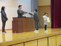 白鳳集会を行いました。今日は表彰と校長の話でした。表彰ではたくさんの頑張った「チーム本郷」のみんなに賞状を贈ることができました。校長の話では「みさと運動」について、特にあいさつを頑張っていこうと話をしました。明日からの「チーム本郷」のみんなの元気な挨拶が楽しみです!!