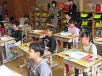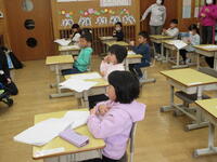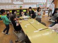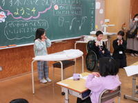 1年生に会津支援学校のお友達が来て交流しました。1年生は手話つきで「ビリーブ」を歌い歓迎しました。その後いっしょに松ぼっくりけん玉を作ったり2組の勉強を見学したりしました。みんな笑顔の素敵な時間となりました!!
