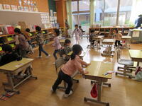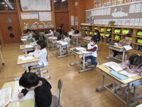 2023年11月14日 10時00分火曜日、1時間目の授業の様子です。1の1は算数。ひき算の学習です。1の2はテストが始まるところです。2年生は体育。サッカーの学習です。3年生はテストです。きらら学級は国語、算数。課題に向かって一生懸命です。4年生は算数。平行の学習です。5年生は理科。実験の結果をまとめています。6年生は1組も2組もテストです。今日の1時間目はテストしている学級が多かったです。みんな頑張っていました。「チーム本郷」学習に本気で郷GO!で取り組みます!!