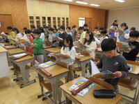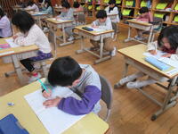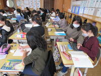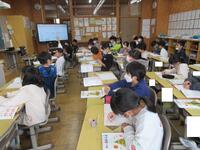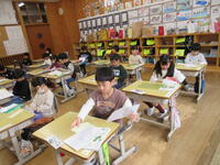2023年11月9日 09時32分木曜日、1時間目の授業の様子です。1の1は国語。漢字を丁寧に書いています。1の2も国語。作文の学習です。2年生も国語。ノートにきれいに書けています。3年生は音楽。きれいな歌声を響かせています。きらら学級は国語、算数。集中力がすごいです。4年生は算数。「平行」の学習です。5年生は国語。タブレットを使ってまとめます。6の1は外国語。先生からの問題をどんどんクリアしています。6の2は算数。友達と話し合いながら、自分の考えを確かめています。今日も「チーム本郷」学習に意欲的にチャレンジしていきます!!