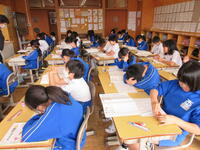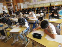 金曜日、2時間目の授業の様子です。1の1は食育授業。野菜の大切さについて学んでします。1の2は書写。聖書に入るようです。2年生は音楽。時計の曲です。3年生は書写。毛筆で名前の練習です。きらら学級は算数、図画工作。面積の問題や絵の仕上げを頑張っています。4年生は道徳。気持ちをしっかりと書けています。5年生は算数。分数の計算です。6の1は算数。比例の問題に真剣に取り組んでいます。6の2は算数。こちらも比例です。1週間の最終日。「チーム本郷」良い締めくくりをしていきます!!
