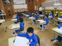2023年10月25日 09時07分水曜日、1時間目の授業の様子です。1年生は書写。ていねいに作品を仕上げます。2年生は外国語。楽しみながら英語を学んでいます。3年生は書写。毛筆です。きらら学級は国語、算数、図画工作。それぞれの課題に一生懸命です。4年生は図画工作。ていねいに色塗りをしています。5年生は国語。漢字プリントに取り組んでいます。6の1は国語。こちらも漢字学習です。6の2は社会。一揆について話し合っていました。今日も「チーム本郷」ドリームに向かって頑張ります!!