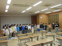2023年10月12日 09時13分木曜日、1時間目の授業の様子です。1年生は学習発表会の練習。みんな元気に頑張っています。2年生は国語。数え歌の学習です。3年生も学習発表会練習。大きな声が出ています。きらら学級は国語、算数。漢字に概数に頑張っています。4年生は算数。見積もりでの計算を学習しています。5年生は音楽。民謡の学習です。6の1は外国語。しっかりと英語を発音しています。6の2は社会。豊臣秀吉について学んでいます。今日も「チーム本郷」学習に集中して取り組みます!!