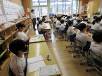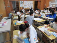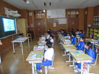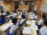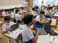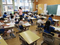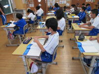 さて水曜日、1時間目の授業の様子です。1の1は外国語。楽しく取り組んでいます。1の2は算数。たし算をモニターを使って分かりやすく学んでいます。2年生は算数。三角形や四角形をかきます。3年生も算数。簡単に計算できる方法を考えています。きらら学級は国語、算数。めあてに向かって今日もすばらしい集中力です。4年生は算数。概数の学習です。5年生も算数。プリントに取り組んでいます。6年生は1組も2組も国語。めあてに向かって一生懸命に学習しています。今日も「チーム本郷」全力で学習に取り組みます!!