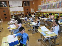 火曜日、1時間目の授業の様子です。1の1は国語。物語を読み取っています。1の2はテスト。終わった人は読書をしています。2年生は学習発表会練習です。頑張っています。3年生は算数。問題に取り組んでいます。きらら学級は算数。それぞれのめあてに向かって頑張っています。4年生は算数。概数の学習です。5年生は理科のテスト。できたかな?6年生は学習発表会の練習。最高学年として頑張っています。今日も「チーム本郷」集中して頑張っていきます!!