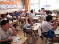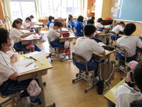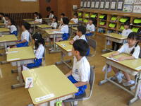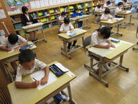 2023年10月2日 09時12分月曜日、1時間目の授業の様子です。1年生は書写。ていねいに練習をしていきます。2年生は朝の会中。今週も頑張ります。3年生は体育。体力テストです。きらら学級は作文を書いたり、先生のお話を聞いて利しています。4年生は算数。およその数の学習です。5年生は体育。3年生同様、体力テストです。6の1は国語。6の2は算数。最高学年、今週も頑張ります。「チーム本郷」10月も「本気で 郷GO! ドリーム スマイル チャレンジ」に向かって、今月も頑張ります!!