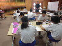 2023年9月14日 09時10分木曜日、1時間目の授業の様子です。1年生は国語。1組は数え歌づくり、2組は音読。どちらも本気です。2年生も国語。先生の音読を聞いています。3年生は音楽。元気にきれいに歌っています。きらら学級は国語。文章を読み取っています。5年生と6の2は体育。一生懸命に頑張っています。6の1は外国語。しっかりと英語で答えられています。「チーム本郷」今日も学習に本気で取り組みます!!