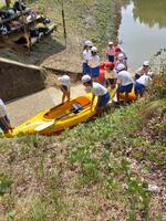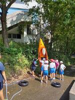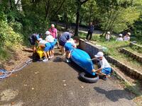 カヌーの活動が終わり、きれいに洗います。そしてこれからお待ちかねの昼食です。