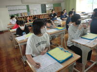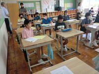 15日(金)に行われます陶芸教室についての事前指導が行われました。今年度の陶芸教室には初めて小学校6年生が参加し、中学生と一緒に活動します。6年生は緊張しながらも真剣に話を聞いていました。中学校と協力して良い時間を過ごせればと思います!!