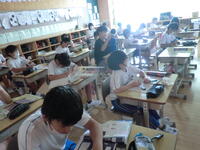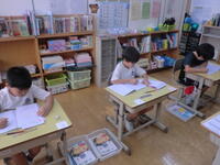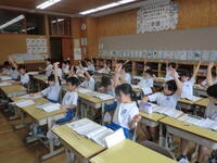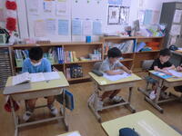 2023年9月5日 09時22分火曜日、1時間目の授業の様子です。1年生は国語。漢字の練習や音読に一生懸命です。2年生はテスト。頑張って問題を解いています。3年生は算数。どちらの数が大きいか考えています。きらら学級は国語、算数。それぞれのめあてに向かって真剣に取り組んでいます。4年生は算数。わり算で商をどこに立てるか考えています。5年生は理科。動画を見て考えています。6の1は国語。熟語を仲間分けしています。6の2は理科。太陽や月について学んでいます。今日も「チーム本郷」学習にチャレンジしていきます!!