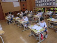 2023年9月4日 09時20分月曜日、1時間目の授業の様子です。1年生は書写。ていねいに練習しています。2年生は国語。プリント学習、読書に一生懸命です。3年生は体育。楽しみながらキックベースボールに取り組んでいました。きらら学級は係カードを作成したり、算数の問題に取り組んだり、頑張っています。4年生はテスト。真剣に問題に向き合っています。5年生は理科。花粉の働きについてまとめています。6の1は図書館で学級文庫の本を選んでいました。6の2は国語。単元の学習の進め方について話し合っていました。今週も「本気で 郷GO! ドリーム スマイル チャレンジ チーム本郷」に向かって頑張ります!!