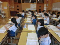 2023年9月1日 09時16分1週間の最終日、金曜日の「チーム本郷」の授業の様子です。1の1は国語。漢字の学習です。ノートの使い方を確かめながらていねいに書いています。1の2は教科書を配っていました。9月1日は全学年、後期の教科書配付日となっています。保護者の皆様、ご確認ください。2年生は算数。ていねいにノートにまとめています。3年生も算数。大きい数について、数直線を使って調べていました。きらら学級は算数。問題に真剣に取り組んでいます。4年生は川の学習に出発します。暑さに気を付けて学習してきてください。5年生は理科。花粉の運ばれ方について学習しています。6の1も理科。学習のまとめをしています。6の2は国語。詩の学習です。1週間の良い締めくくりができるように「チーム本郷」頑張ります!!