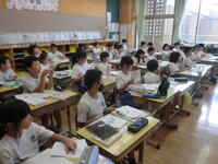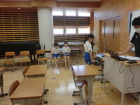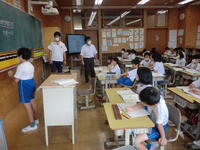 1時間目の授業の様子です。1年生は鼓笛パレードに向けたポンポンの練習。頑張っています。2年生は視力・身体測定と体組成検査。体組成検査では、昨日に引き続き、会津短大の先生にご指導いただいて計測しています。ありがとうございます。3年生は理科。種の観察です。きらら学級は書写、算数。集中力がすばらしいです。4年生は算数。そろばんです。協力しながら頑張っています。5年生と6の2は合同体育。暑さに注意しながら頑張っています。6の2は外国語。しっかりと発音できています。今日も「チーム本郷」元気に学校生活を頑張ります!!
