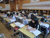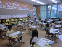2023年8月29日 09時11分1時間目の授業の様子です。1の1は算数「なんじはん」の学習です。1の2は国語。大きな声で音読をしていました。2年生は国語。全体の前で発表をして質問をしています。3年生は算数。大きい数について学習をしていました。きらら学級は国語、算数。しっかりと問題を解いています。4年生は社会。タブレットを使って見学してきたことをまとめています。5年生は理科。顕微鏡を使って観察するようです。6年生は体育。暑さ指数が大丈夫なうちに短距離走のタイムを一人一人計測しています。待っている児童は日陰で待機して熱中症対策に努めています。今日も「チーム本郷」学習を頑張っています!!