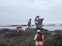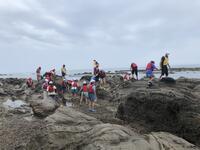 小雨が降っていますが、子ども達は海の生き物探しに一生懸命です。楽しんでいます。