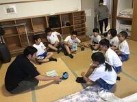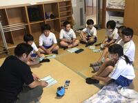夕食終わり班長会議。班長さん、みんな真剣です。