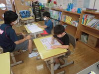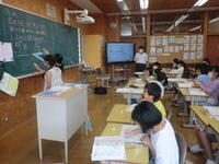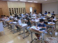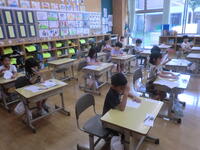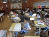 2023年7月13日 10時00分木曜日、1時間目の授業の様子です。1の1は国語。読み聞かせを聞いています。1の2はプリントにていねいに書いていました。2年生は国語。しっかりと発表しています。3年生は音楽。曲をじっくりと聞いています。きらら学級は国語、算数。1学期のまとめ、頑張っています。4年生は算数。小数の筆算を頑張っています。5年生は外国語。発音がばっちりです。6年生は体育。一生懸命にめあてに向かって頑張っています。今日も「チーム本郷」1学期のまとめ、頑張ります!!