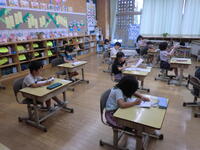 2,3時間目の授業の様子です。1の1は算数1の2は国語。どちらも集中して取り組んでいます。2年生は図画工作。先生のお話を真剣に聞いていました。3年生はテスト。集中です。きらら学級は国語。集中して練習しています。4年生は図画工作。これから作り始めるようです。5年生は音楽のテストです。6年生は講師の先生をお迎えした租税教室です。税について学んでいます。今日も「チーム本郷」一生懸命に頑張ります!!