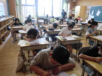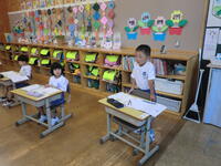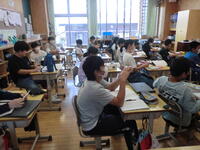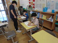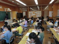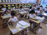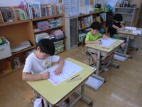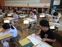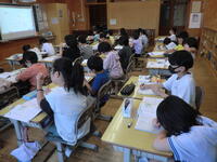 2023年6月19日 09時38分1事件目の授業の様子です。1の1は書写。正しい文について考えていました。1の2はこれから書写がスタートするところです。がんばります。2年生は国語、スイミー。気持ちを考えていきます。3年生は算数。図を使って考える学習です。きらら学級は国語、算数。漢字も分数も角度も読み取りも頑張っています。4年生は国語。物語を読み取ります。5年生はテスト。集中して頑張ります。6の1は算数。みんなにやり方を説明しています。6の2は国語。文の組み立てについて考えています。今週も「本気で 郷GO! ドリーム スマイル チャレンジ チーム本郷!」に向かって頑張ります!!