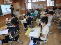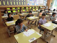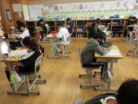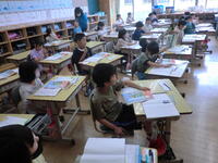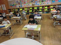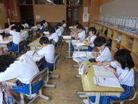 2023年6月13日 09時21分火曜日1時間目の授業の様子です。1年生は国語。真剣な目で学習に取り組んでいます。2年生も国語。「かん字のひろば」の学習です。3年生は算数。どんどん問題に取り組んでいます。すばらしい。きらら学級は国語、算数。集中して課題に取り組んでいます。4年生は大川ダムへの見学学習に出発です。しっかり見学学習に取り組んでくることでしょう。5年生は理科。植物について調べていました。6の1はテスト。集中しています。6の2は算数。分数の問題に学級全体で取り組んでいます。今日も「チーム本郷」授業を頑張ります!!