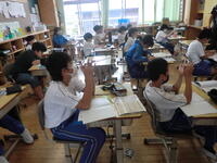 月曜日4時間目の授業の様子です。1年生は音楽。1組も2組も音楽を楽しんでいました。2年生は算数。長さの学習です。3年生は社会。会津美里町の交通について学んでいました。きらら学級は算数。それぞれのめあてに向かって頑張っています。4年生は体育。ベースボール型ゲームに取り組んでいます。5年生は水泳のめあてを立てていました。6の1は算数。分数の問題をしっかりと解いていました。6の2は社会。聖徳太子について学んでいました。今週も「チーム本郷」学習にしっかりと取り組んでいきます!!
