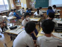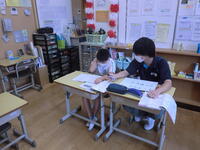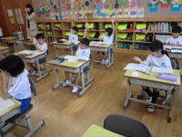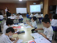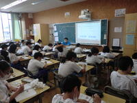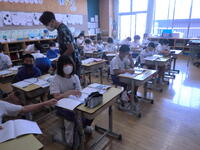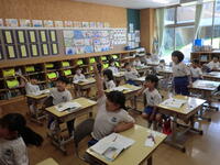 2時間目の授業の様子です。1の1は算数。のこりがいくつになるか、しっかりと考えていました。1の2は国語。「くちばし」について考えています。2年生は体育。マットで上手に回れています。3年生は外国語。楽しく英語を学んでいます。きらら学級は算数。分数の計算です。4年生は理科。グラフを見て考えていました。5年生は算数。小数のわり算にチャレンジです。6年生は算数。分数の問題にじっくりと取り組んでいました。週の真ん中、水曜日。「チーム本郷」学習に集中して取り組みます!!