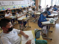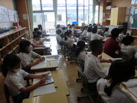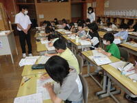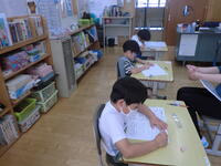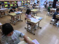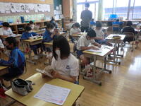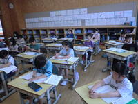 2023年6月6日 09時50分1時間目の授業の様子です。1の1は算数テスト。一生懸命に頑張っています。1の2は国語。「きんぎょ」のように小さい「や・ゆ・よ」が入る言葉を考えていました。2年生は国語。めあてを書いて音読して頭に入れます。3年生は算数。「801-3」のような10の位に0が入る引き算の問題にチャレンジしていました。きらら学級は国語、算数。国語では漢字や文章問題にチャレンジ。算数では計算問題にチャレンジです。4年生は算数。3けた÷1けたのわり算を解いています。5年生は理科。発芽する前とした後の子葉を調べていました。6の1は国語。話し言葉と書き言葉の違いについて考えていました。6の2はテスト。もう終了して読書やドリルに取り組んでいる子ども達もいました。今日も「チーム本郷」意欲的に学習に取り組みます!!