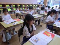 水曜日2時間目の授業の様子です。1の1は書写。手本を見て丁寧に書きます。1の2は国語。元気に音読します。2年生は体育。マット運動を頑張ります。3年生は外国語。元気に発音します。きらら学級は先生のお話をしっかりと聞きます。4年生は理科。車がしっかり走る方法を考えます。5年生は算数。小数のかけ算をばっちりにします。6年生は算数。分数の計算を完璧にします。今日も「チーム本郷」学びに意欲的に取り組みます!!