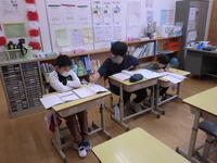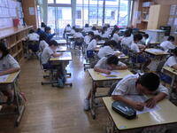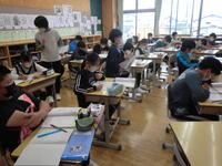 雨が降り、少し肌寒い火曜日2時間目の授業の様子です。1の1は算数。昨日の学習をしっかりと覚えています。1の2は学習準備です。これから集中して取り組みます。2年生はテストが返されます。結果はどうかな?3年生は体育。マット運動です。きらら学級は算数。問題がしっかりと解けています。4年生は理科。テストがスタートします。頑張ってください。5年生は算数。どちらの式が正しいか、確認をしています。6の1は算数。問題がばっちりできているようです。6の2は音楽。曲を聴いてワークにまとめるようです。今日も「チーム本郷」学習を頑張っていきます!!