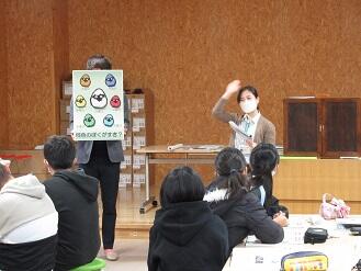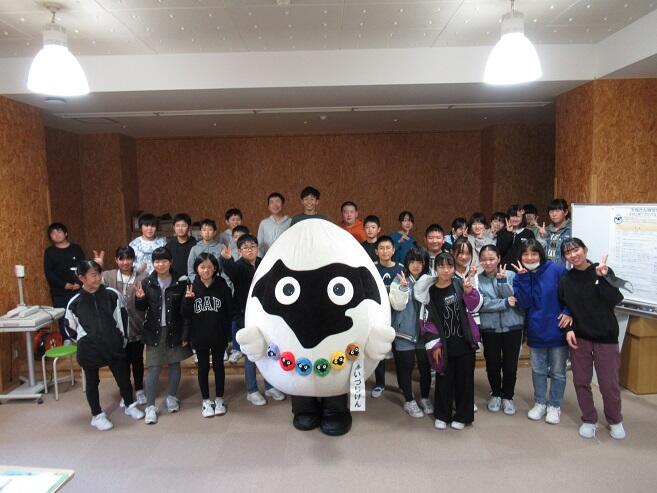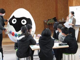 さて、11月28日(月)に、町教育委員会主催の「天海上人について学ぼう」の授業が6年生でありました。6年生の総合的な学習の時間に、地域の歴史探究の一環として実施しました。町のマスコット(ゆるキャラ)の「あいづじげん」の愛称のもとになっているのは、天海上人(慈眼大僧正)です。会津美里町に生まれたとされ、徳川3大将軍の相談役としても活躍された江戸次代を代表する僧侶です。ご存じの通り「あいづじげん」には7色のキャラクターがあります。それぞれ、白(白磁器)、紫(あやめ・ぶどう)、赤(炎・高田梅)、青(湧き水・温泉・清酒)、緑(樹木)、黄(あいづ人参)、茶(土)を表しているそうです。会津美里町の特色に重ねているんですね。6年生は、紙芝居や年表をもとに、天海上人について学びました。最後に、「あいづじげん」くんが登場するサプライズに、子どもたちは大喜びでした。