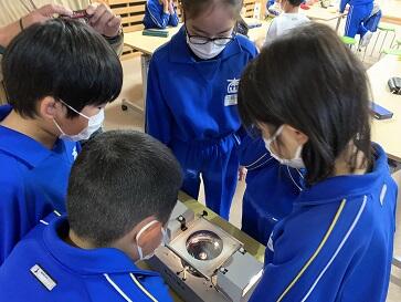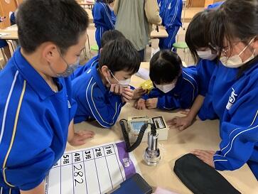 3年生は、紙芝居と画像・映像、霧箱で放射線についての理解を深め、4・6年生は、物質の放つ放射線を測定する実験を行いました。