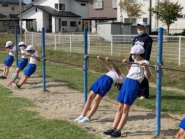 2022年10月4日 17時34分10月4日(火) 3年1組に入っている教育実習生の初めての授業研究が行われました。体育科の鉄棒の授業でした。補助具を使って「さかあがり」の練習に取り組みました。「初めて回れた!」という喜びの声が上がるなど、こどもたちは一生懸命に取り組んでいました。