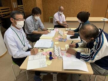 まず、本郷小・中学校の義務教育学校に向けての取り組み状況と今後の見通しについて報告致しました。(保護者の皆さんには、町教育委員会から、10月12日(水)に本郷中学校体育館を会場に説明会が開催されます。10月3日(月)に文書配付予定です)次に、第2回目の熟議を行いました。テーマは、第1回の熟議の結果を受けて「地域を愛し、誇りに思う児童・生徒の育成に視点をあて、地域の課題やよりよい地域にしていくための具体的な提案(学校と地域の連携・協働を通して)」としました。委員の皆さんが3つのグループに分かれて、付箋紙を活用した熟議を行い、発表し合いました。3つのグループから「地域の交流の機会が少ない」「顔の見える関係になっていない」「みんなが集まる(世代を超えた)楽しいイベントや体験活動が必要」という課題が出されました。そして「町中が楽しい活動への取り組みを企画し、みんなが集まる機会を増やしていきたい」ことを今後の課題として学校・地域の各団体と連携をとって考えていこうと話し合いました。そのための具体的な活動として、「ごみ拾いボランティア」「ながら見守り・あいさつ運動」「外遊びの場の確保」「地域住民の授業参観」「子どもたちの高齢者訪問」など、思いつくだけあげていき、すぐに実施できそうなこと、時間をかけて吟味していきたいこと、行政等とも連携を図っていかなければならないことなど、今後の熟議でさらに検討を重ねていくことを確認しました。