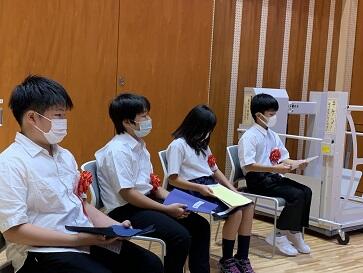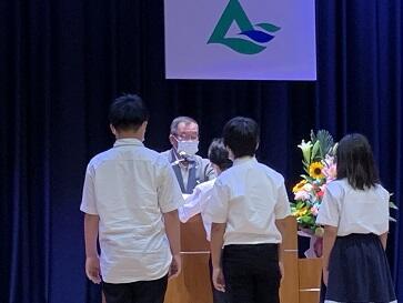 8月6日(土) 少年の主張会津美里町大会が行われ、本郷小学校からは、6年生の遠藤馳隼くんが代表で出場しました。まずは、中学生の発表でした。中学生らしい視点で、社会性のある話題から自分たちにできることを訴える発表が続きました。最優秀賞3点と優秀賞5点選ばれました。小学生の発表は、各校代表1名で、奨励賞として称賛されました。馳隼くんの発表は、給食の残菜の多さ(フードロス)から世界的な飢餓で命を落とす子どもの問題、栄養と健康の問題についての発表でした。会津美里町の将来を担う子どもたちの素晴らしい発表に、感銘を受けました。