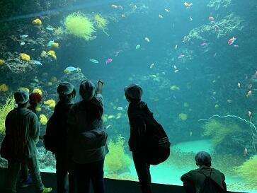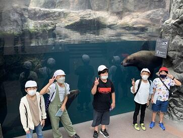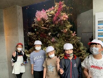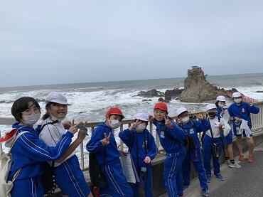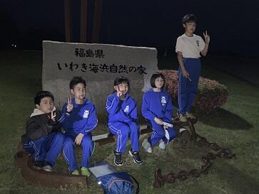 いわき海浜自然の家に到着すると、入所のつどいがありました。オリエンテーションの後、昼食を食べ、海岸ウォークラリーがスタートしました。地図をたよりに5kmを越えるコースを歩き通しました。途中、激しい波の海を見ながら、潮風に吹かれ、海を満喫しました。夕食の後は、ナイト・ハントです。敷地内に設置された星座の看板を探して、秘密のメッセージを考えました。ロッジに泊った次の日、自然の家を後にして「アクアマリンふくしま」に向かいました。アクアマリンふくしまでは、まず11年前の東日本大震災について学習しました。津波が押し寄せ90%の生き物が死んでしまったこと、日本中の水族館が援助してくれて、再開することができたことなどが分かりました。館内のたくさんの生き物を見学し、昼食の縄文カレーを食べてから帰校しました。楽しく充実した2日間でした。