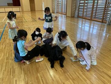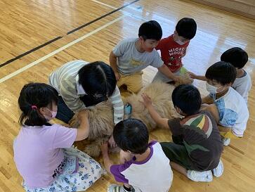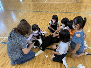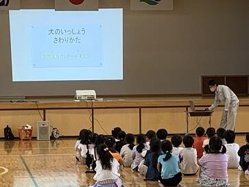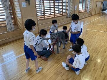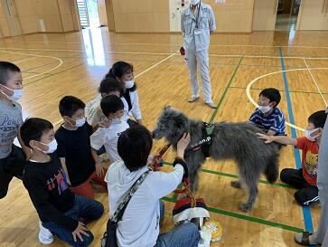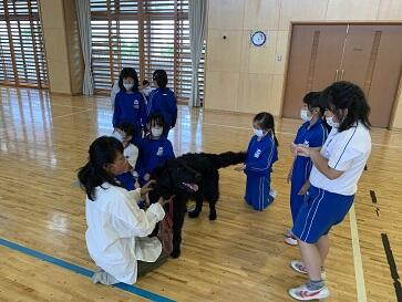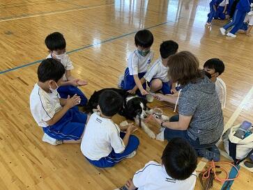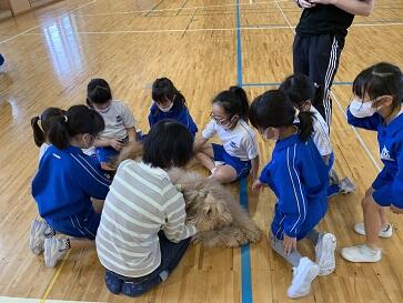 2022年6月17日 17時39分6月17日(金) 今日は、1・2年生の生活科で、獣医師派遣事業を活用した動物との触れ合いを行いました。獣医師派遣事業とは、県の事業で動物愛護センターやボランティアの方の協力で、子どもたちに動物との触れ合いの機会を等して、動物への愛情を育むというものです。まずはじめに、身近な動物である犬の一生と触れ方についての説明を受けました。そして、ボランティアの方が連れてきてくださった犬を触らせていただきました。初めて犬のような大きな生き物に触る子も多く、ドキドキしながら触っていましたが、生き物としてのぬくもりや動きを実感していました。愛護センターとボランティアの皆さん、ありがとうございました。
