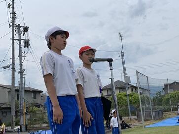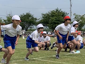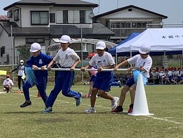 2022年6月17日 15時24分 6月11日(土)、前日までの雨模様で心配されましたが、本郷小学校創設10周年の記念の年の運動会を実施することができました。当日の朝は、PTA総務委員会・厚生委員会の皆さんのご協力で、会場設営が行われました。ありがとうございました。開会式の前に、鼓笛を披露しました。コロナ禍の中、練習時間の確保が十分でなかったのですが、子どもたちは一生懸命に演奏してくれました。開会式では、優勝杯の変換、スローガンの発表、選手宣誓などが行われました。今年の運動会のスローガンは、5年生の星みちるさんが考えてくれた「おめでとう10周年! みんなでつかもう記念の優勝杯」です。10周年にふさわしいスローガンになりました。ラジオ体操の後、徒競走が行われましたが、前日までの雨で芝が濡れていたため、滑って転んでしまう子がいましたが、転んでもすぐに立ち上がり、歯を食いしばって最後まで走りきる姿は立派でした。団体演技の他に今年はチャンスレースも行いました。3位までに入賞してリボンをいただいた子どもたちは誇らしげでした。残念ながら入賞できなかった子も、一生懸命に走る姿は心に残りました。6年生の係の活動も素晴らしかったです。