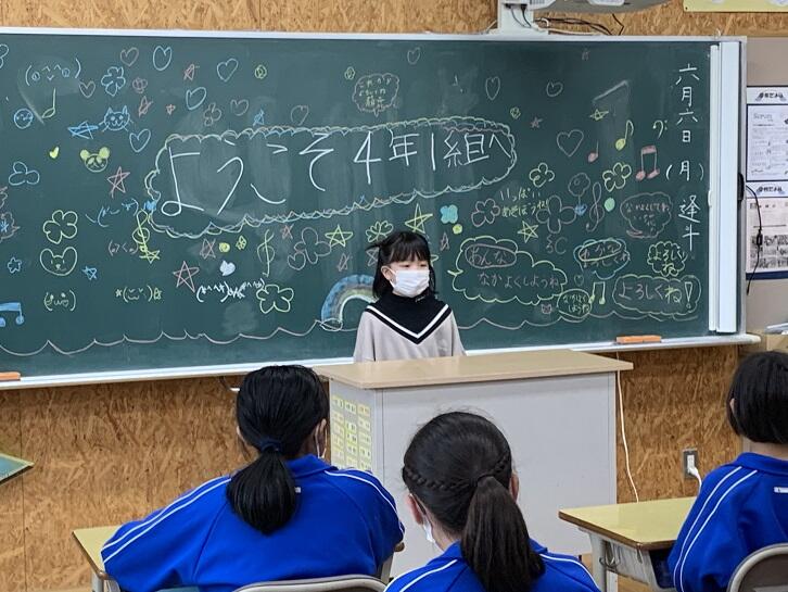 6月6日(月) 今日から4年1組の教室に新しいお友達が増えます。山形県からの転入です。みんな仲良くしてあげようね。早く新しい学校に慣れるといいね!