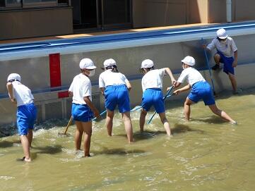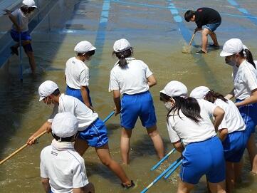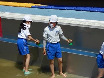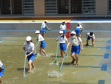 プール清掃 2022年6月8日 15時59分 6月2日(木) 6年生が修学旅行のため、5年生がプール清掃を行ってくれました。一生懸命に磨いてくれたプールに水が張り、今年も水泳の授業に取り組むことができます。ありがとう5年生!!!!!