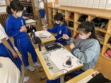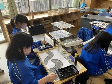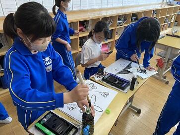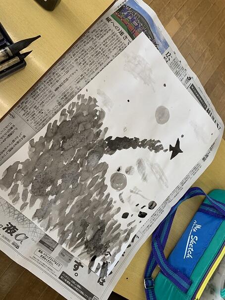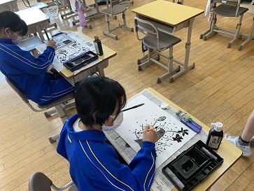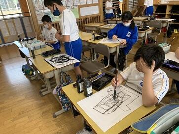 6年生は、図工で水墨画にチャレンジ! 墨の濃淡がうまくいかずに真っ黒になってしまう作品もありましたが、下書きの無い和紙に描く作品に記帳しながらもがんばって取り組んでいきました。なかなか趣のある作品もできあがっていましたよ。